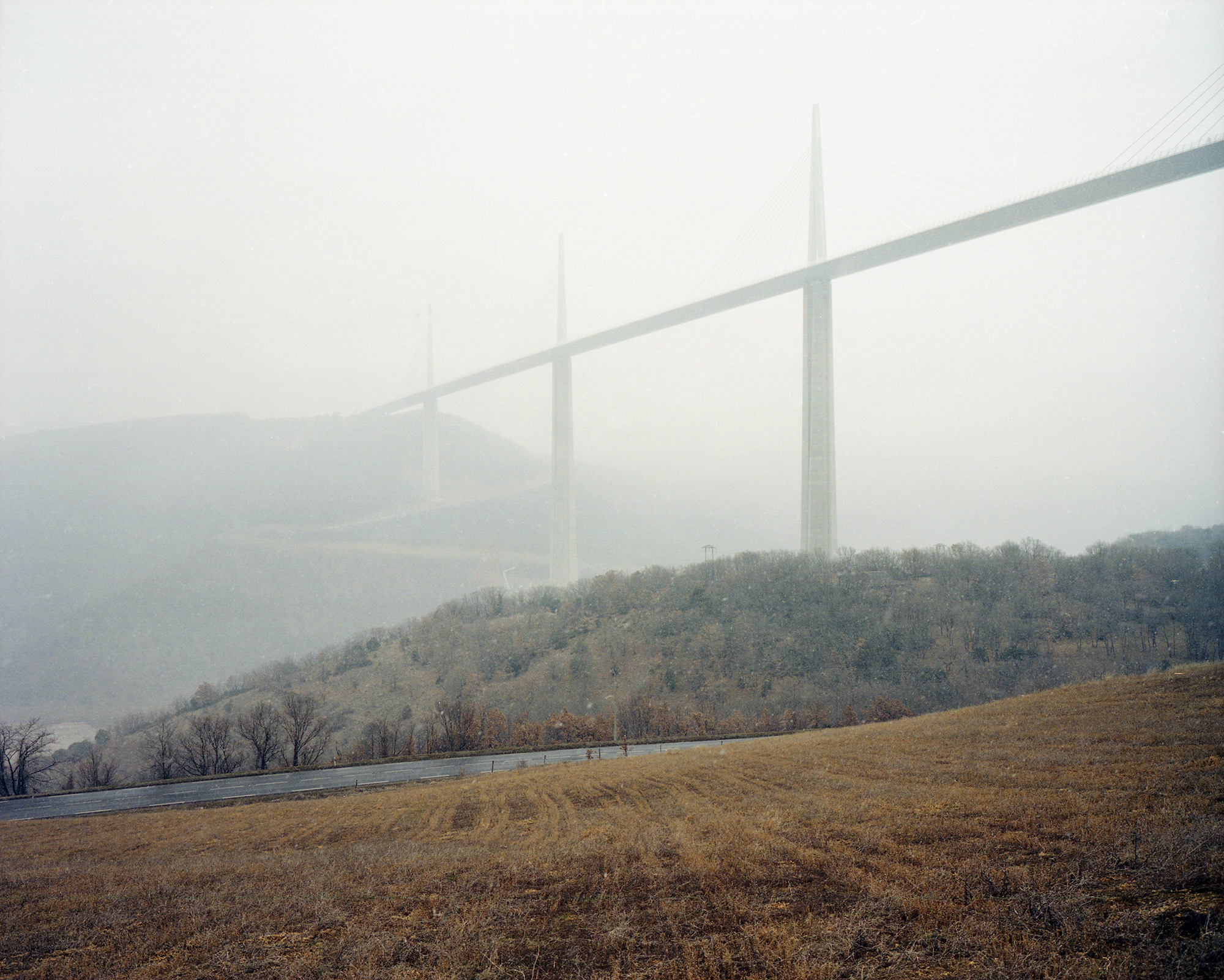 Ces photographies ont été réalisées autour du chantier du viaduc de Millau et de l’A75 entre juillet 2002 et Mai 2005, au cours d’une douzaine de campagnes de prises de vue.